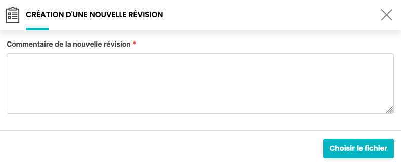 Vous pouvez indiquer votre commentaire, puis cliquer sur « Choisir le fichier ». Le cycle d’ajout de document reprend comme pour l’ajout d’un nouveau document (vu précédemment).