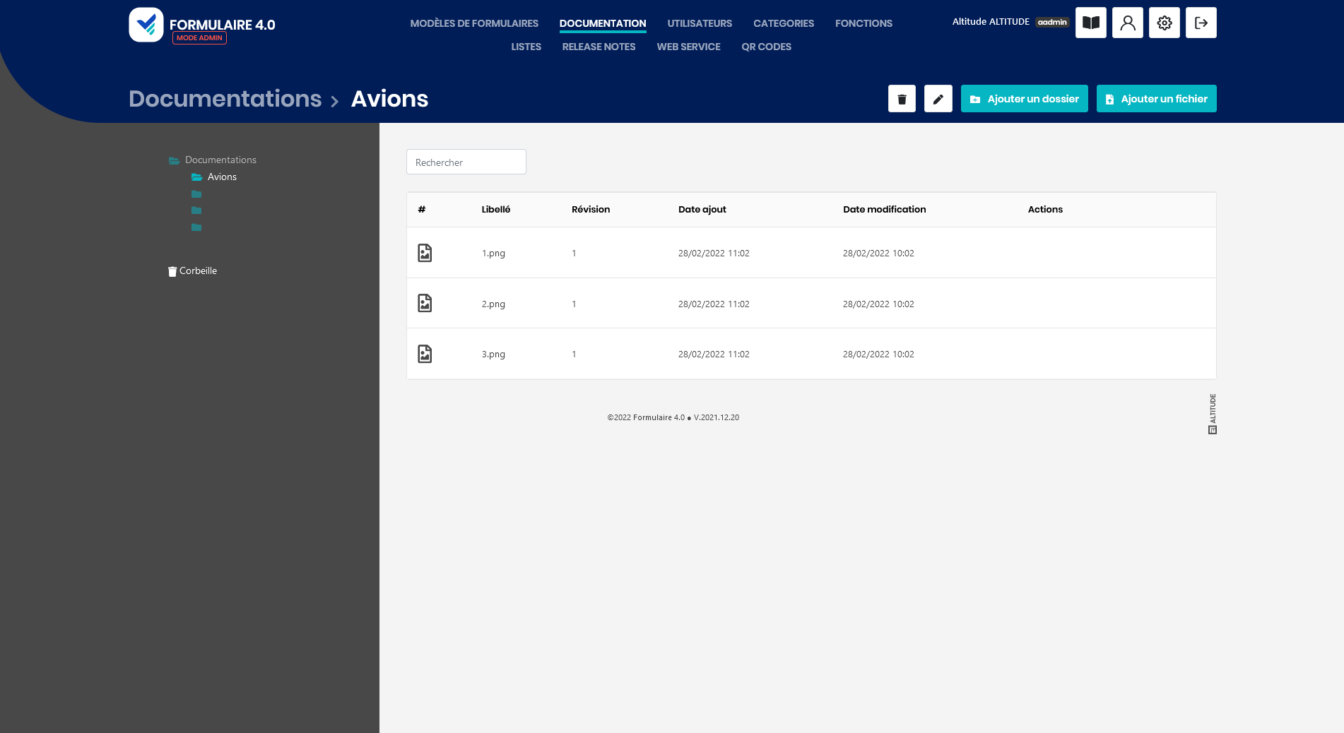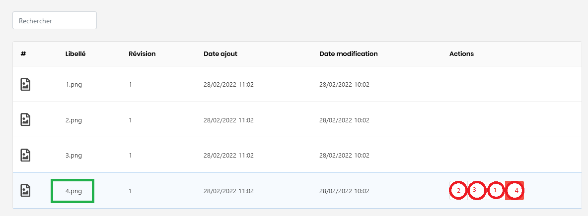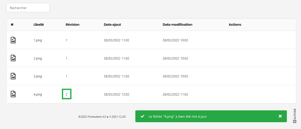 Une fois la nouvelle version ajoutée, quelques modifications apparaissent sur le listing des documents (encadrées en vert ci-dessous) :