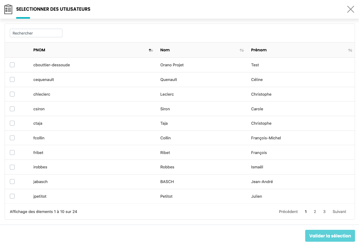 - Sélectionner dans la liste les utilisateurs à ajouter en tant qu’administrateurs. Vous pouvez rechercher un utilisateur à l’aide du champs de recherche.