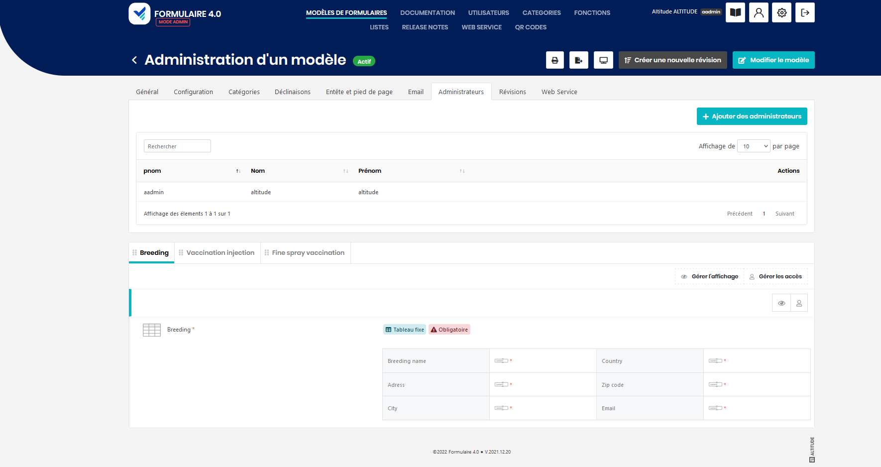 Vous pouvez également supprimer les droits d’administrateur d’un utilisateur sur le modèle de formulaire en cliquant sur dans les actions de l’utilisateur concerné dans l’onglet « Administrateurs ».