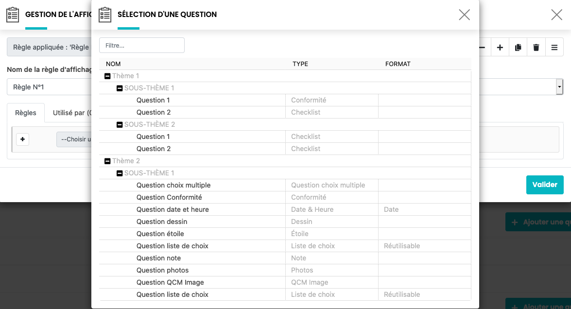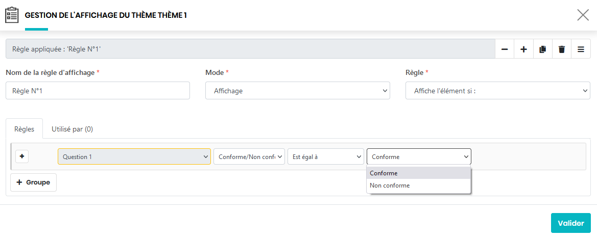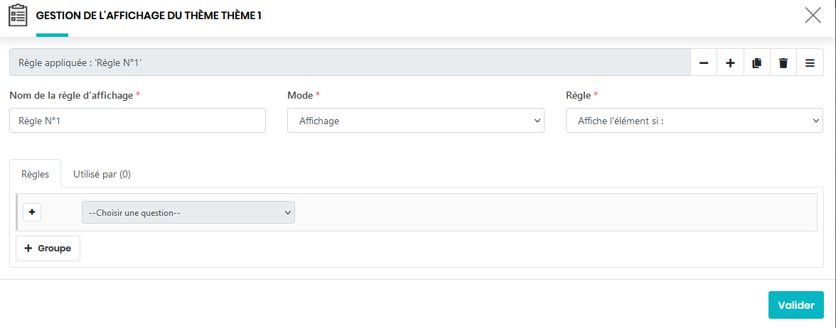 Vous pouvez ajouter de nouvelles règles en cliquant sur le bouton ou valider la règle en cliquant sur