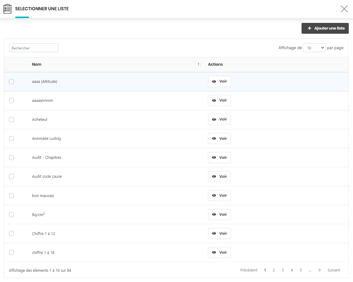 Cliquer sur le nom de la liste ou le bouton voir pour sélectionner la liste que vous souhaitez utiliser dans votre modèle.